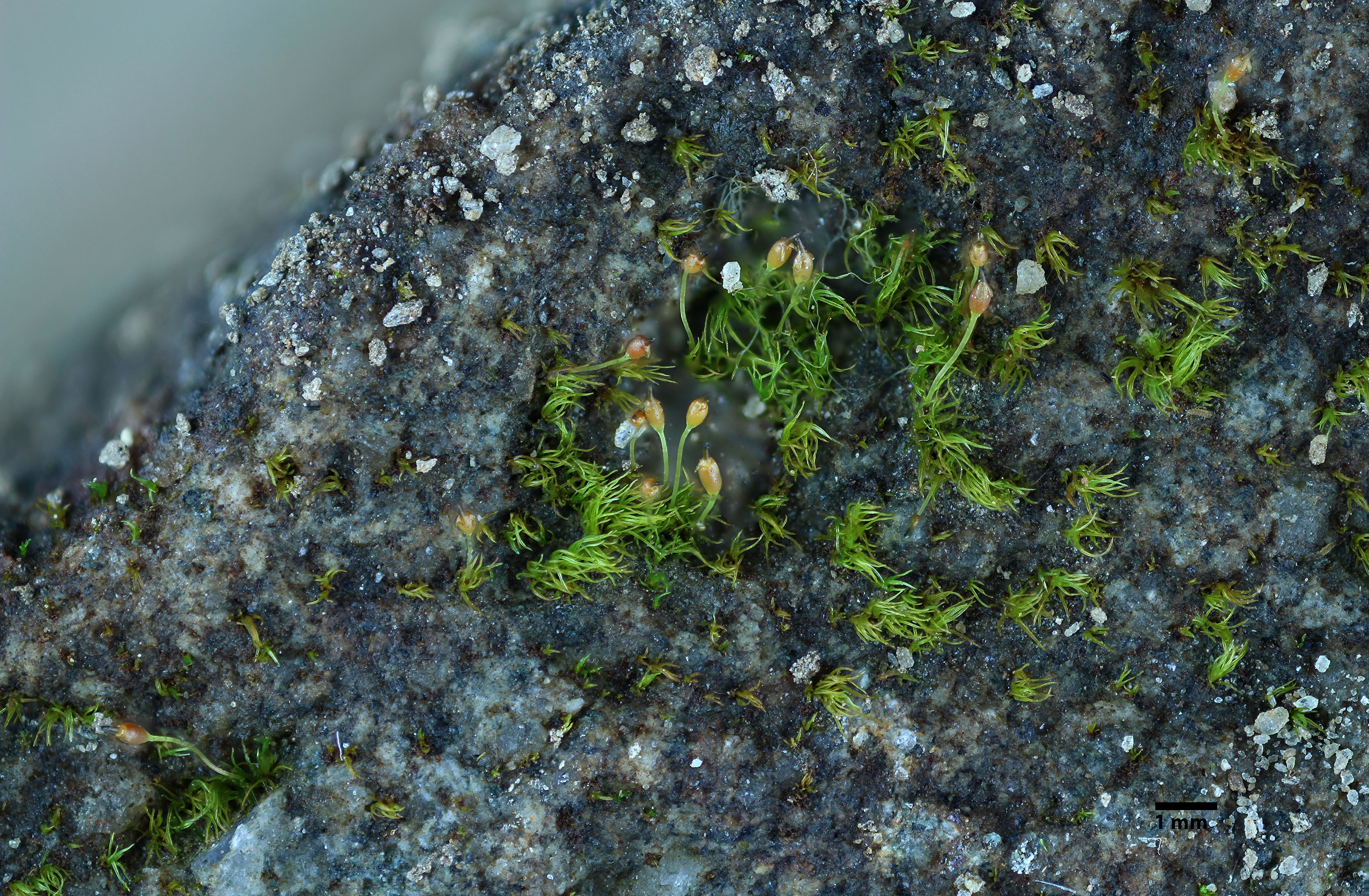 Very small, 1-2 mm tall, to 5 mm tall including the sporophyte; gregarious acrocarp.
