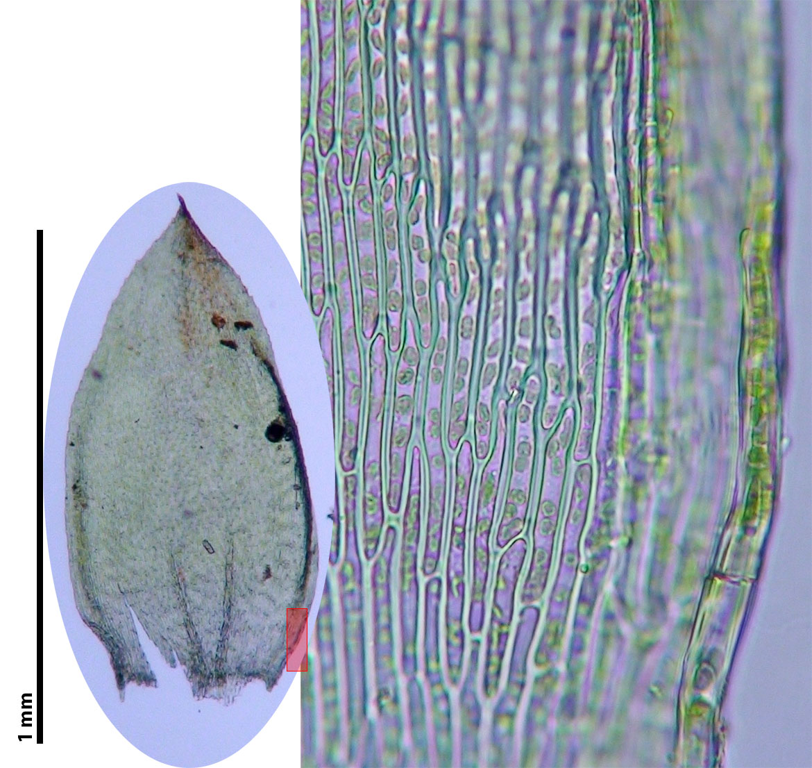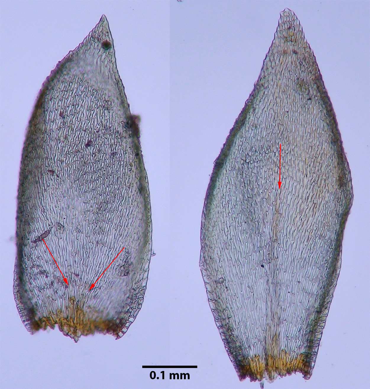 A suite of characters should be confirmed when identifying Leptohymenium sharpii. None of the characters by themselves is diagnostic as many other mosses have them.
