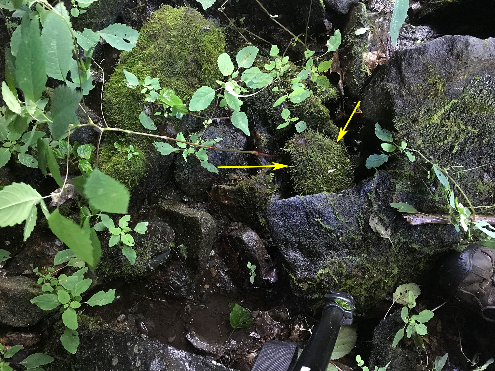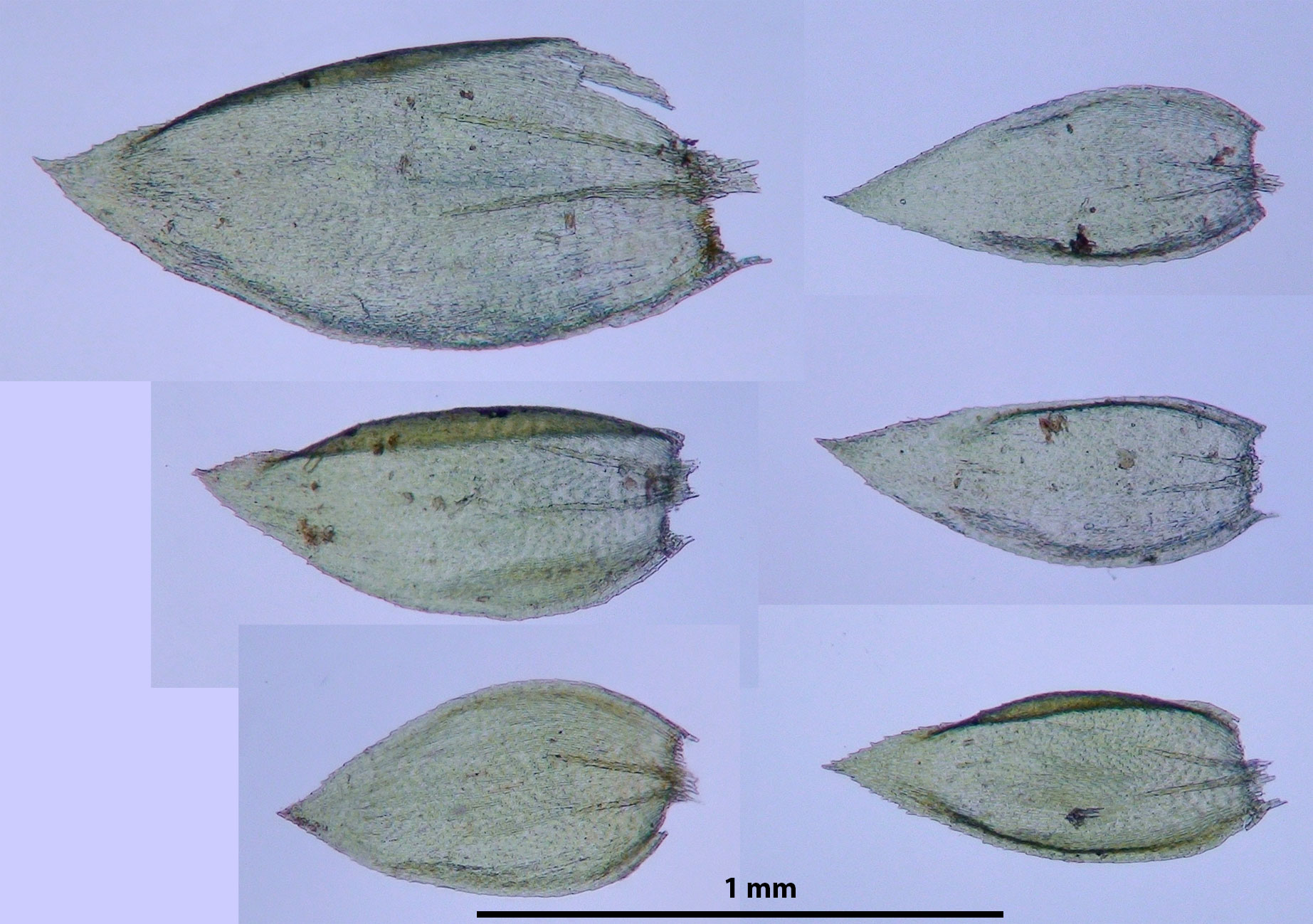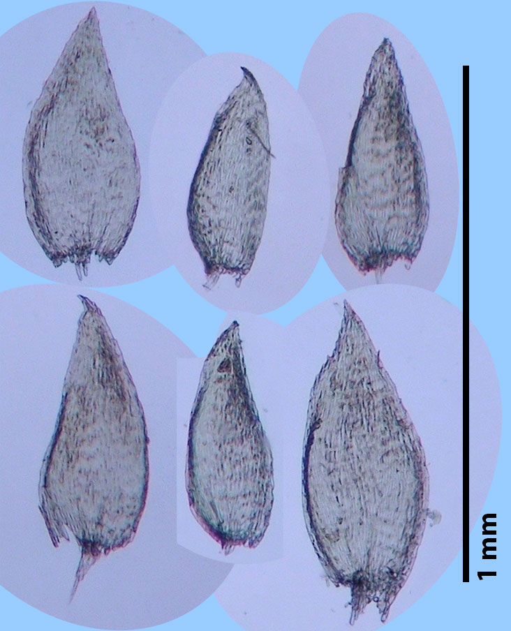 There are many other pleurocarpous mosses that share the same general leaf shape and growth habit. Sharp (1933) suggested “plants have somewhat the gross appearance of Hygrohypnum micans” (=Hageniella micans), a moss that grows on wet rocks. Forms of Scwetschkeopsis fabronia, a shiny pleurocarp, can be mistaken in the field, and possibly mistaken in the lab given the projecting cell ends at the back of the leaf and possibility of a short double costa in this normally ecostate moss. Sematophyllum demissum is very common on rocks near streams but is usually on rocks that remain rather dry except during periods of rain. It differs in having an entire leaf margin and enlarged alar cells.