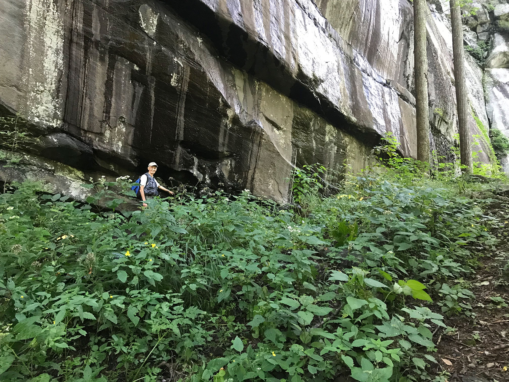 "Hemlock-hardwood coves or in the transition spruce-fir zone" (Anderson 1996). On shaded rock that is permanently moist to wet. Occurring on wet (often dripping), vertical faces of rock, protected rock ledges, on tops of low stones at ground level where protected by overtopping cliffs, or rock outcroppings/boulders in steep banks in deep stream ravines. Label data on specimen A.C. Risk 8123 (MDKY) "on dry outcrop of Thunderhead Sandstone, 50 yds. west of falls, Tsuga forest with thickets of Rhododendron maximum and Leucothoe" indicates the species may tolerate minor desiccation in otherwise very humid, shaded locations. Risk, as cited in Anderson (1996), stated, "The species appears to favor seepy cliffs and recesses associated with waterfalls. Most of the places where I have seen it, it has been on a rock face that slants backward such that the base of the rock face is farther from your feet than the upper part of the outcrop is from your face. [] I've unfortunately, had little time to explore the higher elevation areas in the Smokies, but would not be surprised if Leptohymenium occurs on wet outcrops both near and away from streams." Occurring over a wide range of elevations, 500 - 1700 meters (Rohrer 2014).