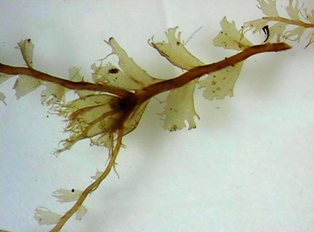 Small, predominantly bilobed expressions are not uncommon at the periphery of more robust material. Weak populations have a higher percentage of shoots with the morphology illustrated above. Even in this depauperate condition, the tiny leaves show evidence of producing caducous lobes.