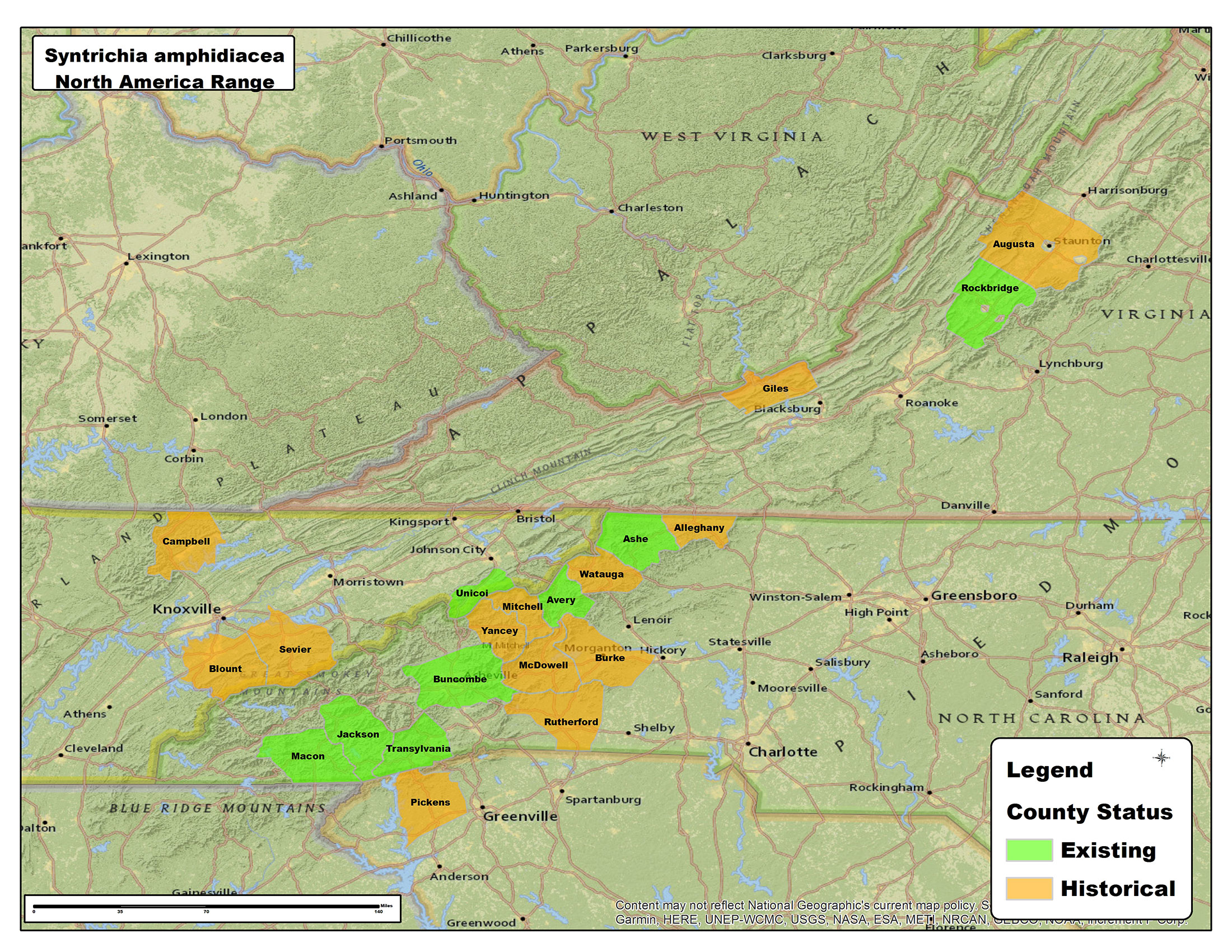 North America. U.S.A. (North Carolina, Tennessee, Virginia). Mexico. Central America. South America. Africa, Asia (Daniels et al. 2016, Mishler 2007).